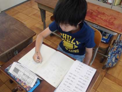 宿題をがんばっている人,自分で持ってきたドリルに取り組んでいる人など様々ですが,みんな集中してがんばっています。