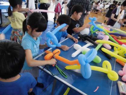 本日,土曜学習のあと,午前11時より「わかばまつり」が開催されました。体育館のブースには、バルーンアート、カンバッチ作り、生け花体験、駄菓子屋さんなどたくさんあり子どもたちも目を輝かせていました。