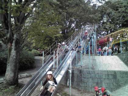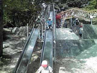 早速あそびはじめました。長い滑り台や大きな遊具に夢中です。