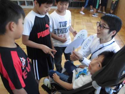 今年も醍醐西校区に住んでいる東総合支援学校の友だちが遊びに来てくれました。じゃんけん列車などをして楽しみました。久しぶりにあったけれど,みんなすぐに打ち解けて楽しそうに遊んでいました。また,近所で会った時にも仲よく話せるといいですね。