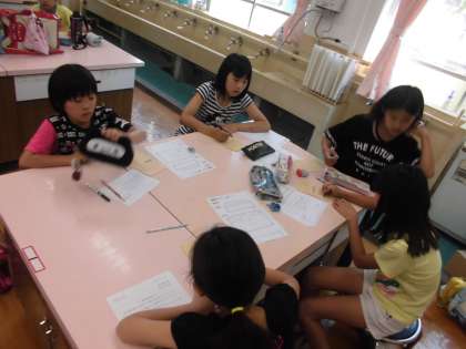 家庭科クラブの様子です。前回の授業,調理実習(クレープ作り)の振り返りをしました。班で話し合って感想の交流をしています。