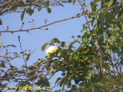 今朝,正門前のカリンの木を見上げると,大きな実が一つついていました。思わず写真を撮りました。まだ一つですが,これからどんどん増えていくのでしょうか?