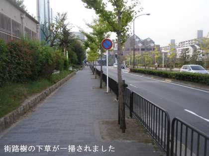 昨日学校の西側(外環状線)の歩道にある街路樹(イチョウ)の下草をきれいに刈り取っていただきました。京都市の町美化の方にしていただいたと思いますが,ぼうぼうに生えていた下草(雑草)の中にポイ捨てゴミもいっぱいあり気になっていました。