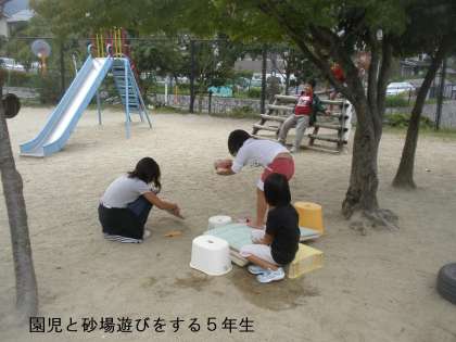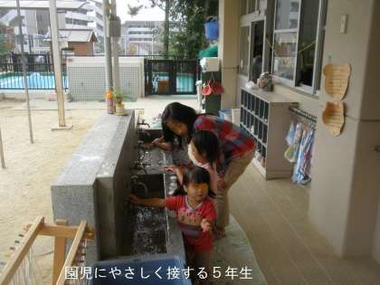 いつもより,やさしい言葉で園児と話している姿が印象的でした。来週にもう一度交流します。