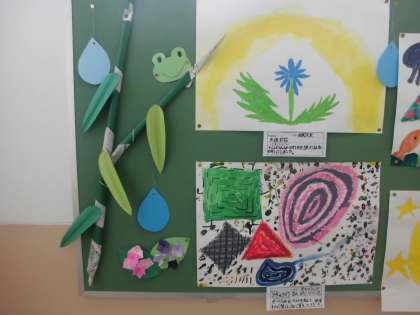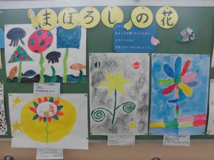 だれも見たことも聞いたこともないまぼろしの花を想像を広げて絵に表しました。また,懇談会に来られた際にご覧ください。