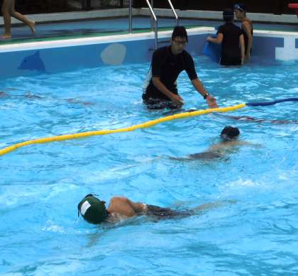 暑くなってきたので,水が少しぬるく感じるくらいになっています。自分のめあてに応じてそれぞれの泳ぎ方の練習をしています。