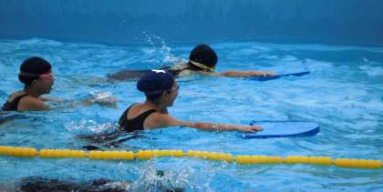 ビート板を使って,体の使い方を練習しています。それぞれのレベルに応じていろいろな泳ぎ方に挑戦しています。