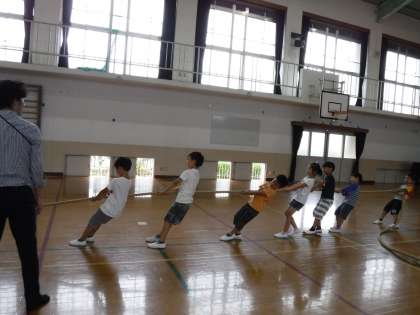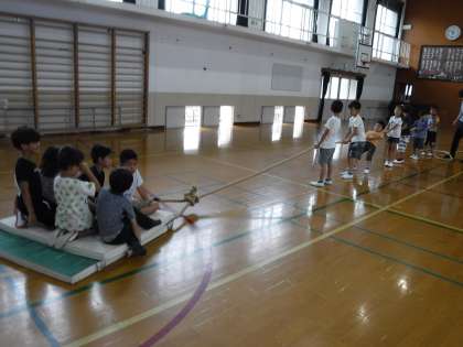 中間休みは低学年が、放課後は中学年、高学年が綱引き大会にむけて一生懸命練習に励んでいます。「おーえすっ」の掛け声が体育館に響いています。ラストスパートがんばれ!!