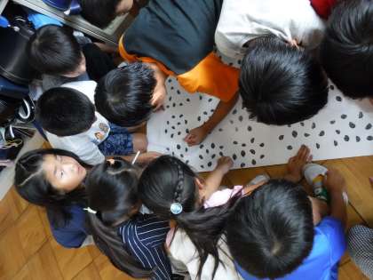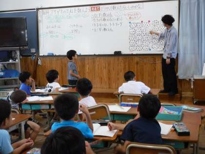 たくさんのアサガオの種を数えます。1つずつ数えていく子。10ずつのまとまりをつくって数える子。子どもたちは、いろんな方法で数えていました。そのうちに、1つずつ数えていた子が、「あれ、何個だっけ?」と数が分からなくなってきました…10ずつのまとまりをつくって工夫して数えると数えやすいことが分かりました。