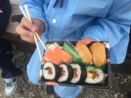 お昼のメニューは、お寿司弁当とバナナです。
