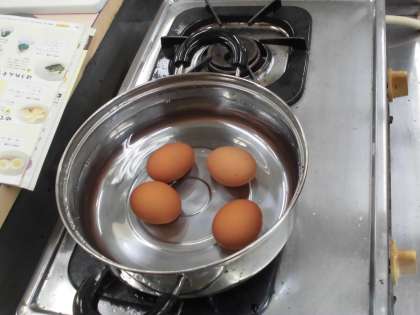 5年生は「ゆでる調理」の調理実習を行いました。作るのは「ゆでじゃがいも」と「ゆで卵」です。