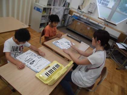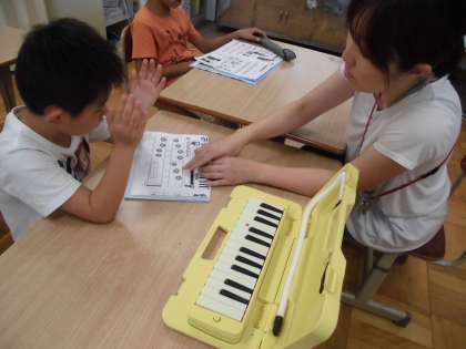 1年生は鍵盤ハーモニカを、3年生はリコーダーを学習しました。指使いやリズムを意識しながら練習に取り組みました。