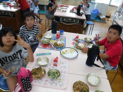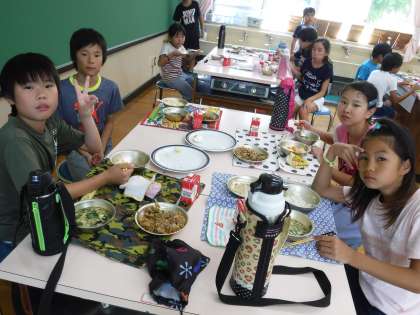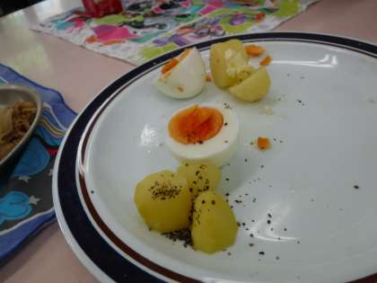 完成!!今日は家庭科室で給食を食べました。いつもと違う場所で食べる給食にわくわく。そしてゆでたまごもゆでじゃがいもも大成功♪