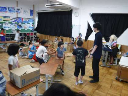 2年生はこの日に向けて、「1年生を笑顔にさせる!」という目標でがんばりました。話し合った結果、みんなでおばけやしきを作り1年生を招待してあげることになり何日も前から一生懸命準備をする2年生。わくわく♪無事1年生は笑顔になってくれるのでしょうか…