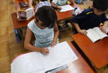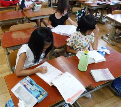 落ち着いた雰囲気の中,学習プリントや読書,自主学習に取り組んでいます。プールまで集中してがんばります!