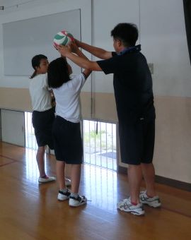 暑い体育館ですが、バレーボール部のメンバーは基礎練習からみっちり取り組んでいます。