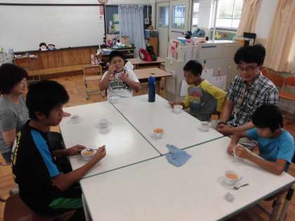 夏休みももうすぐ終わります。今日は,みんなでゼリーを作りました。固まるまでの間,夏休みの思い出についてみんなで話しました。おいしくできて,みんな大満足です。