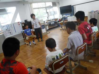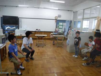 3くみでは朝会の後、転入生を中心に円になって自己紹介をしました。