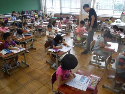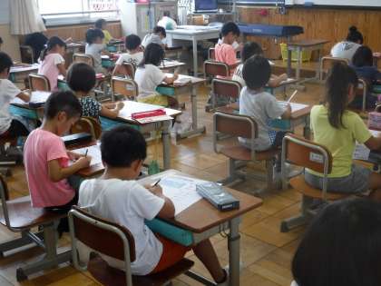 1年生ではさっそく算数のテストが行われました。夏休み前に学習したことのたしかめテストです。解けたかな??