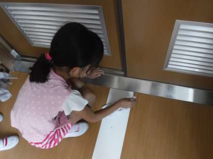 1年生の大そうじの様子です。廊下の隅や、扉のすきままでていねいに拭いてくれています。また机運びでは重そうにしているお友だちの様子にすぐに気付いて、手伝いに行く姿もあり成長を感じました。