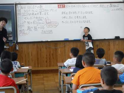 「80+30=110」になることをどうやって1年生に説明すればよいのかをみんなで考え、話し合いました。