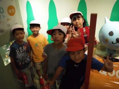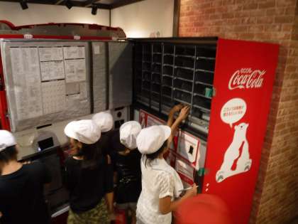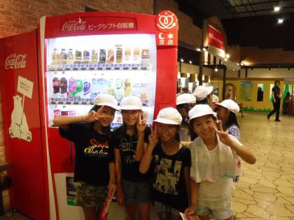 自動販売機の仕組みを学習したり、体験コーナーでは、飲料水の容器で作った玩具で遊んでいました。