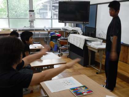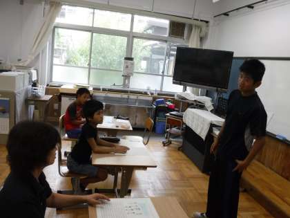 3くみでは、昨日の出来事を絵と文章で書き、それを使って発表しあいました。
