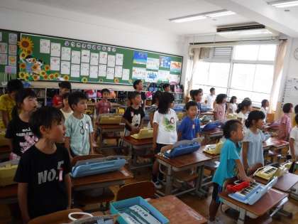 次は、鍵盤ハーモニカで「かっこう」「おとのまねっこ」を指使いに気を付けて練習しました。鍵盤ハーモニカでふける曲が多くなってきましたね。