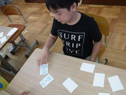 一人ひとりの机上にそれぞれの課題にあったカード問題を伏せて並べます。
