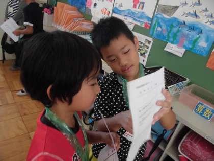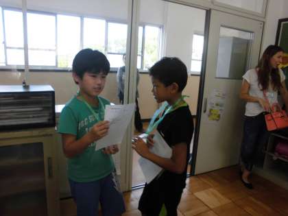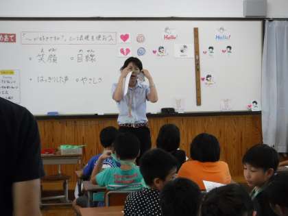 4年生は前回に引き続き、「好きなもの」「嫌いなもの」の英語での言い方を音楽に合わせて練習しました。前回に比べてスムーズに友だちと交流することができました。