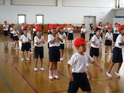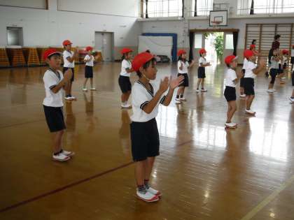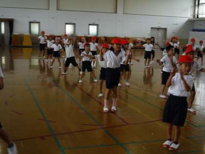 運動会に向けて、1・2年生は合同で団体演技の練習を行っています。