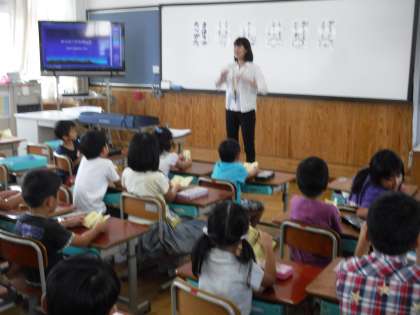 1年生は栄養教諭の先生から、「まほうの食べ方」について教えてもらいました。