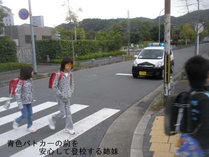 今朝も,子どもたちや地域を見守る青色パトカーが走っています。子どもたちの登校道を中心に巡回していただいています。