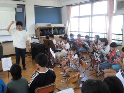 「ありがとうの花」を歌ったあと、リコーダーで「威風堂々」を演奏しました。