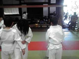 今日は,部活動の柔道部が学童柔道大会に出場のため,岡崎の武道センターに行きました。試合前の様子です。