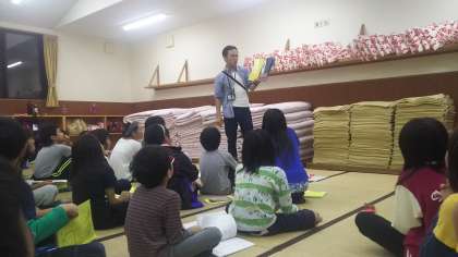 夜の振り返りと、原先生の読み聞かせです。