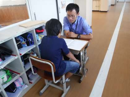4年生でも通知票「かがやき」を、一人ひとりと話しながら渡しました。