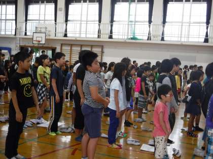 そのあと、「人を 大切にする子」「すすんで あいさつができる子」「最後まで やりぬく子」「心も体も 健康で明るい子」という内容で校長先生からお話がありました。