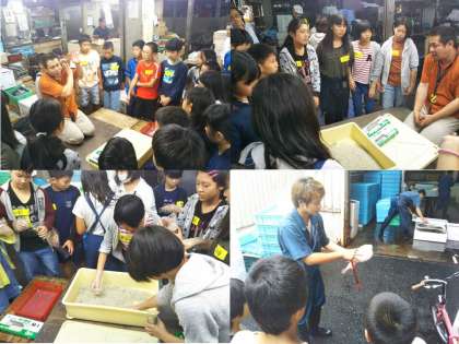 続いて生簀(いけす)の見学です。生簀見学では、魚を触らせていただきました。