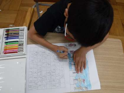 4年生は、みさきの家に行った思い出の絵と作文をかいています。