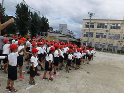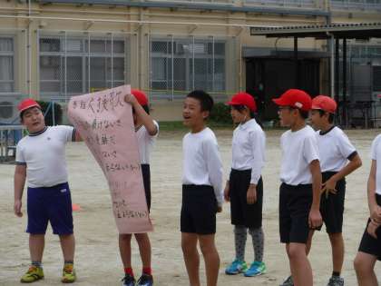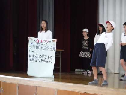 赤組と白組、それぞれに分かれて応援合戦の練習をしました。