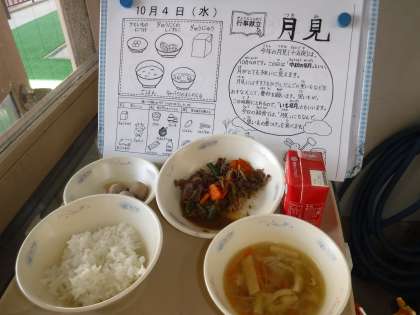 月見にちなんで、給食には里芋がつかわれています。
