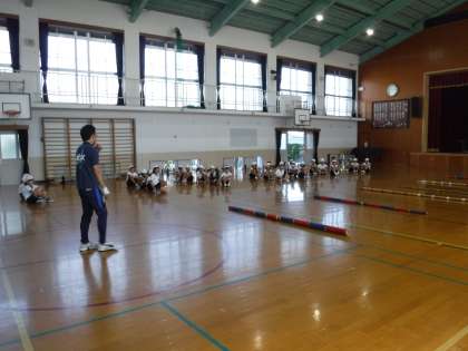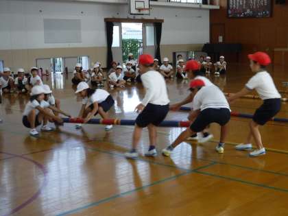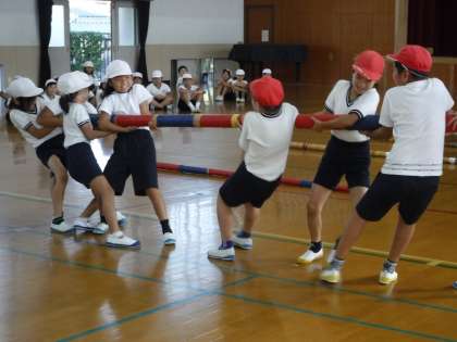 スタートダッシュと、あまり体を倒さずに竹の棒をひくことがポイントだと先生から教えてもらいました。