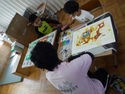 3くみの「お話の絵」、完成に近づいてきました!