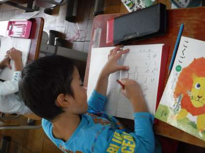 今日は物語の内容を確認し、きつねが履いていたズボンを描いてみました。
