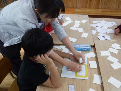 誰が一番正解しているかな?競い合いながらがんばっていました。