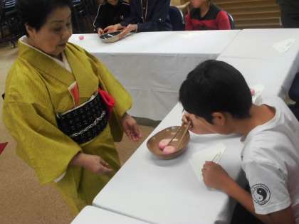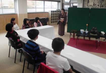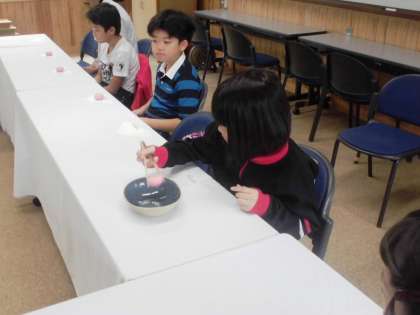 女性会の方にお世話になり,高学年の茶道体験教室が行われました。