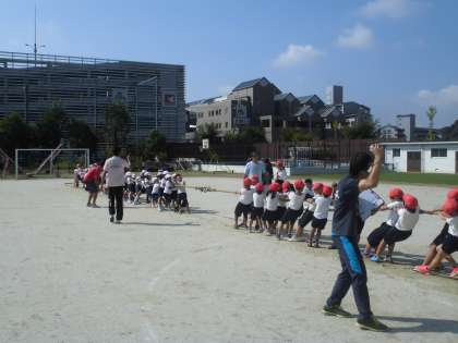 『綱ひき』です。入場の仕方から練習です。