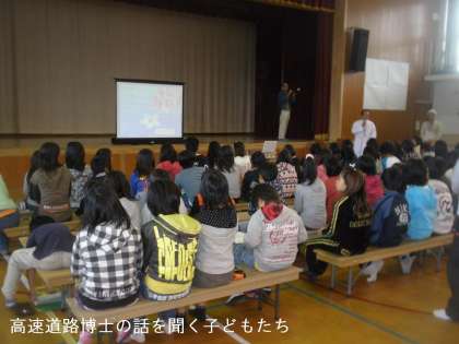 5〜6校時に総合の学習で「高速道路を楽しく学ぼう!」道路博士の出前授業をしていただきました。