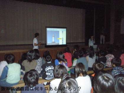 阪神高速道路の会社からなんと17名の方にきていただき,8班に分かれて阪神高速道路のしくみや震災時の様子などを教えてもらいました。
